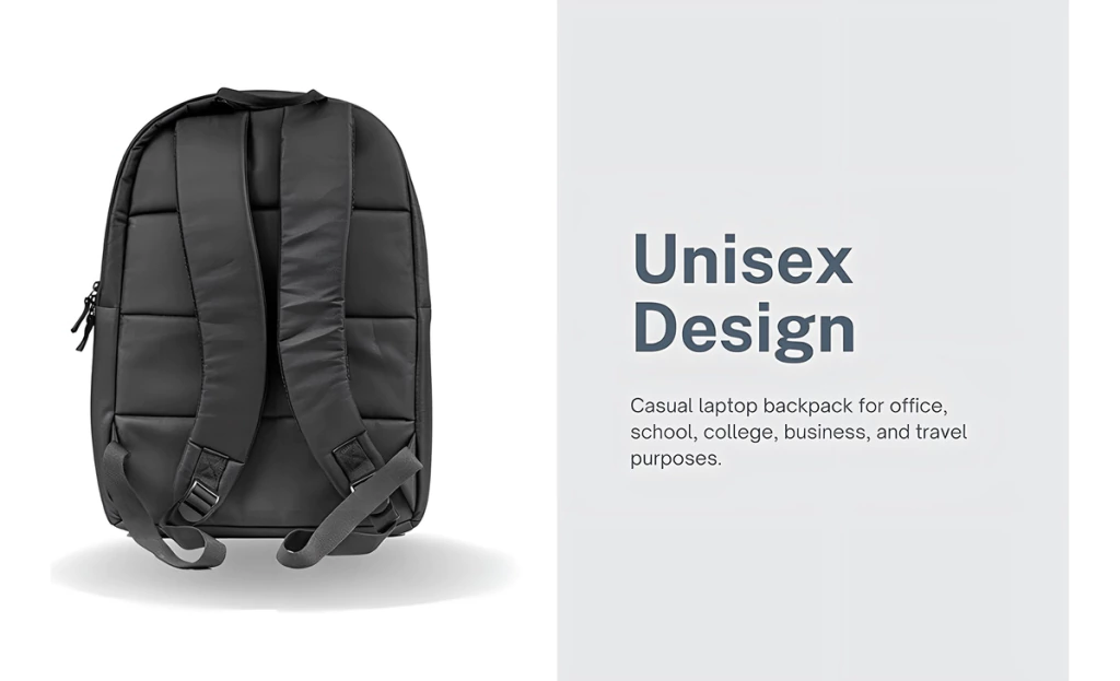 Diseño Elegante y Duradero: Su acabado en color negro y su material de alta calidad no solo le dan un aspecto profesional y moderno, sino que también aseguran que la mochila resista el uso diario.